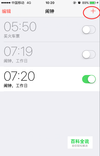打开闹钟app,点击右上方的“+”按钮添加一个闹钟提醒。