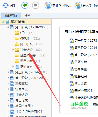 接下来是整理文献,我们可以在单元下方新建文件夹,这个和资源管理器方法一致,可以层层建立文献夹。