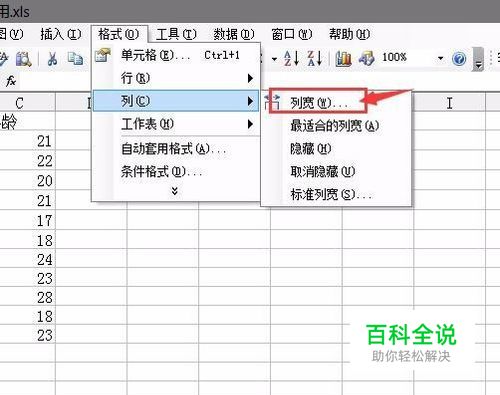 这时候我们选择格式里面的,列宽。