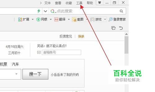 在浏览器最上面的菜单栏里面找到工具,并点开。