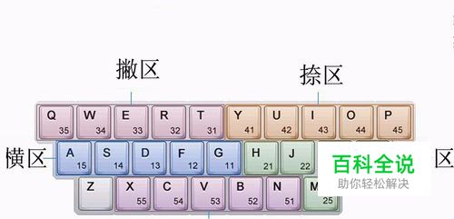首先要搞清楚五笔里面的五个分区,横,竖,撇,捺,折。横区有5个键G、F、D、S、A。竖区有5个键:H、J、K、L、M。撇区有5个键T、R、E、W、Q。捺区的5个键Y、U、I、O、P。折区的5个键N、B、V、C、X。这个作为了解一下就可以了。