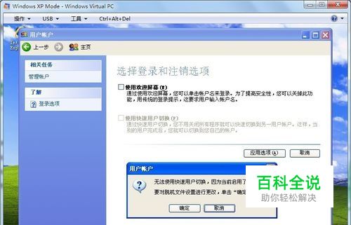 勾选使用快速用户切换→应用选项