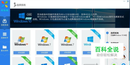点击重装按钮,开始进入系统选择界面,选择你需要安装的操作系统,最上面为操作系统的简单描述,可以根据需要自行选择,本次教程以当前最新的windows 10 企业版 64位版本为例。