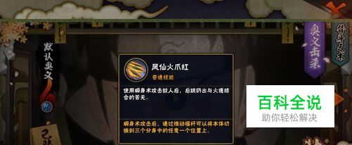 “凤仙火爪红”使用瞬身术攻击敌人后,后跳扔出与火遁结合的苦无。瞬身术攻击后,通过推动摇杆可以将本体切换到三个分身中的任意一个位置上。摇杆在后为施放技能的位置,摇杆在前为第一个分身位置,摇杆不动为中间的分身位置。此技能经常用于起手与躲避敌人技能,并且此技能可以扫地,挺秀的一个位移技能,而且还能在空中施放此技能