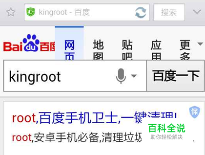 2,我们需要现在手机浏览器中搜索一键ROOT或者是KINGROOT、ROOT大师等工具,然后下载安装好这样的手机应用