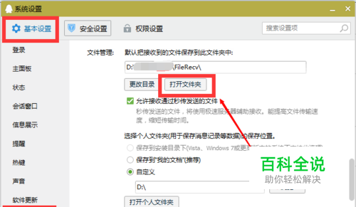 在弹出来的界面里面,我们找到基本设置,在基本设置里面,找到文件管理,然后打开文件夹,点开,