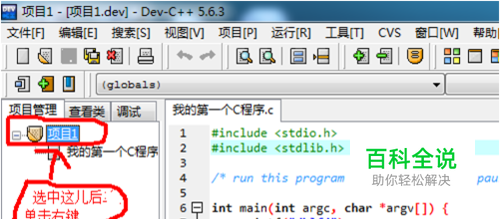 新建头文件之前,选中“项目”