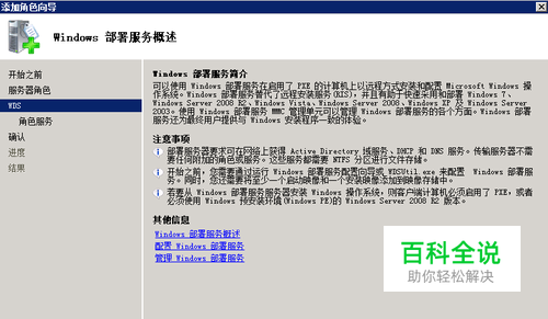添加角色向导中添加windows部署服务 这里已经在server上安装了部署服务的角色,接下来进行部署服务的配置。