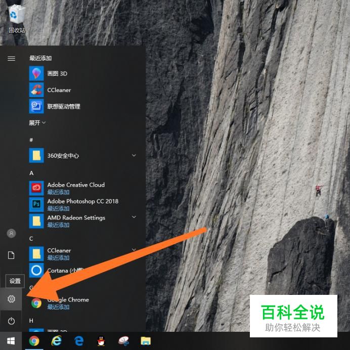 首先点击桌面左下角的“开始”图标,然后点击进入“设置”。