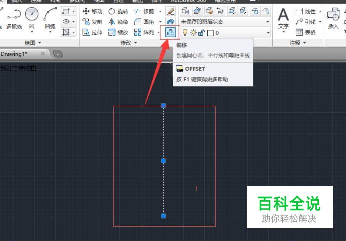 我们选择该直线,并点击菜单栏中的“偏移”选项。