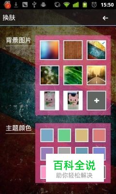 点击手机上的功能菜单-换肤,显示换肤界面。换肤分两个设置:背景图、主题颜色。背景图加各种主题颜色,几十种风格变化完全可以满足您的日常需求。
