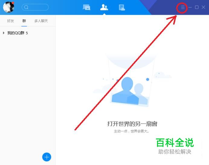首先,登录腾讯QQ,点击右上角的“≡”选项。