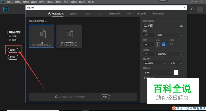 点击左侧的“新建”,打开新建对话框,如图所示。