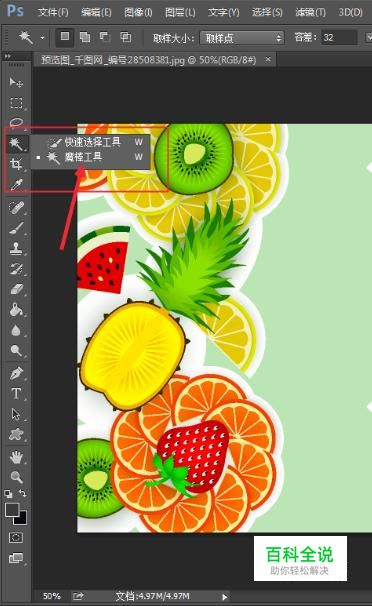 在photoshop工具中,找到魔棒工具。如下图红色标注内容所示。