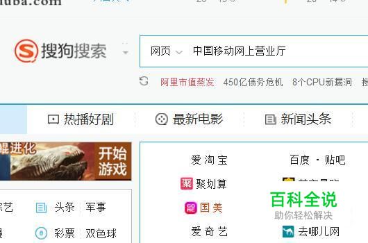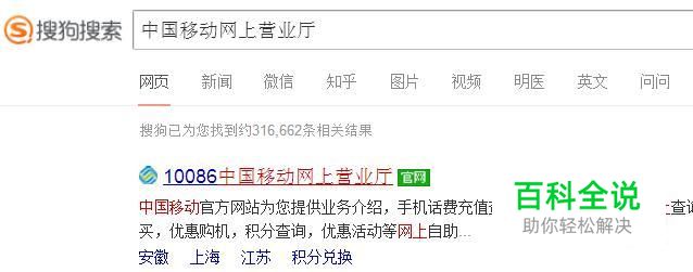 首先在搜狗浏览器中输入中国移动网上营业厅并点击回车键,如下图所示。