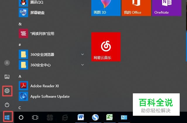 首先,我们点击电脑左下角的微软按钮,弹出的界面,我们点击设置;