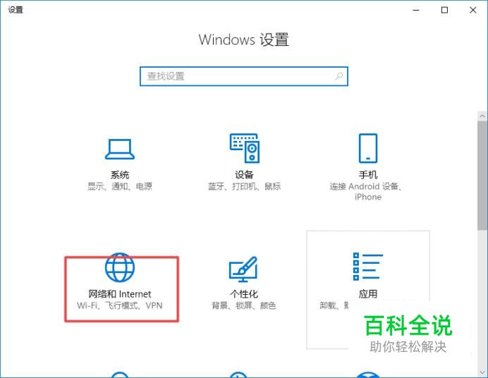 弹出的界面,我们点击网络和Internet;