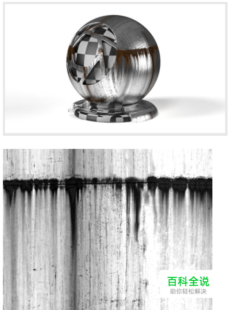 反射贴图 反射贴图可以使用黑色和白色数值指出有不同的反射强度级别的区域,黑色会指出反射率为0%的区域,而白色则指出反射率为100%的区域,下图中的金属部分是反光的并发出反射光,而生锈的部分则没有,生锈的部分映射了黑色,而金属部分则映射了白色。