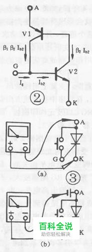 单向可控硅触发特性测试 单向可控硅与二极管的相同之处在于都具有单向导电性,不同之处是可控硅的导通还要受控制极电压控制。也就是说使可控硅导通必须具备两个条件:阳极(A)与阴极(K)之间应加正向电压,控制极(G)与阴极(K)之间也应加正向电压。当可控硅导通以后,控制极就失去作用。单向可控硅的导通过程可用图2所示的等效电路来说明:PNP管的发射极相当可控硅的阳极(A),NPN管的发射极相当可控硅的阴极(K),PNP管的集电极与NPN管的基极相联后相当于可控硅的控制极(G)。当在A、K之间加上允许的正向电压时,两只管子均不导通,此时当在G、K之间加上正向电压便形成控制电流流入V2的基极,如此循环直至两管完全导通。当导通后,即使Ig=O,由于V2有基极电流,且远大于Ig,因此两管仍然导通。要使导通的可控硅截止,必须把A、K正向电压降低到一定值,或反向,或断开。根据可控硅的导电特性,可用万用表的电阻档进行测试。对小功率可控硅可按图3(a)所示联接电路,在可控硅A、G之间联接一只轻触开关(以便于操作),用万用表的R×1Ω档,黑表笔接A极,红表笔接K,此时给可控硅加上一正向电压(通过万用表内附的干电池),万用表的指针不动,可控硅不导通,当按下开关,A、G接通,在G、K之间加上触发电压,可控硅才导通,万用表的指针偏转,指向一个较小的值;当G、A断开后,失去了控制电压,如果万用表的指针位置不变,可控硅仍处于导通状态,说明该可控硅的触发特性良好,如果G、A断开后,万用表指针随即偏转,指向∞。即可控硅不导通,则说明该可控硅的触发特性不好,或已损坏。对功率较大的可控硅,由于导通电压降较大,维持电流难以维持,引起导通状态欠佳,此时应在可控硅的阳极(A)上串接一节干电池,如图3(b)所示电路进行测试,以免引起误判。对于大功率可控硅应在图3(b)的电路上再串上一节干电池,使测试效果明显。一般来说在测试10A以下的单向可控硅用图3(a)所示联接电路;10A一100A的可控硅用图3(b)所示联接电路,测试100A以上的单向可控硅应在图3(b)上再串一节干电池。 在测试单向可控硅的基础上,对其它类型的可控硅,根据其基本结构,也可用万用表对其进行测试