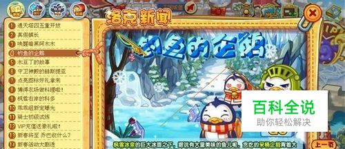 寒冷的冬天,一只来自远方的为了觅食企鹅来到了洛克王国的枫雪冰泉哟~只要与枫雪冰泉中的野生宠物战斗就有几率随机出现哟~