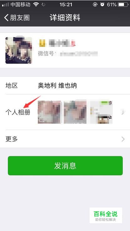 首先我们现在个人资料里打开朋友圈的个人相册。