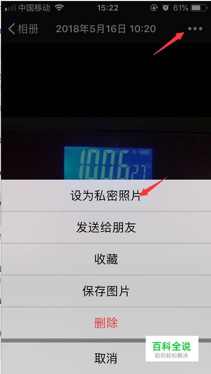 接着点击视频进入,然后点击右上角的小圆点,最后选择设为私密照片的选项。