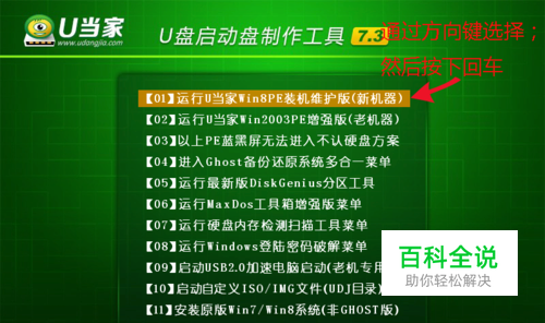将U盘启动盘与电脑连接,重启电脑,选择U盘启动电脑,在u当家U盘启动主界面选择“【01】运行U当家win8PE装机维护版(新机器)”,然后按下回车键进入PE系统。