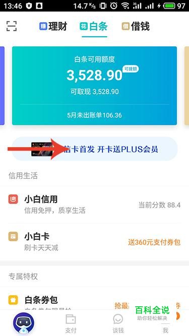 在应用市场下载安装“京东金融”,安装完成之后进入,在“白条”界面点击推送的“U信卡首发”