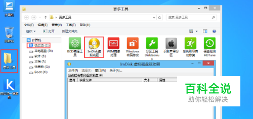 等待片刻进入得到快启动pe系统,在pe系统桌面打开“更多工具”文件夹下的“ImDisk虚拟光驱”,然后点击“装载”,将准备快启动U盘启动盘根目录下的win7系统镜像加载至软件中,如下图所示: