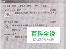 步骤2:执行【工具】丨【选项】命令,弹出【选项】对话框,在【账户】选项卡中,选中【我的联系人包括SIP通讯服务用户】复选框,并输入登录名,如图2所示。 图 1 Messenger 图2 【账户】选项卡
