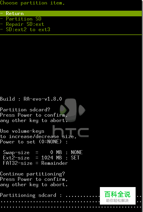 给SD卡分区,并刷机这里建议使用RA-evo-v.1.8.0 的 Recovery,因为本文教程使用的是这个版本的Recovery。