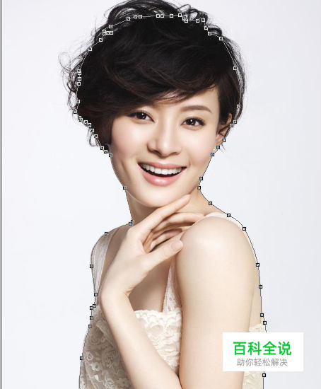 首先,用钢笔工具勾勒外形,头发部分不用全勾线,外围有白边的地方可以先忽略。选中后复制一层,得到下面第二张图。
