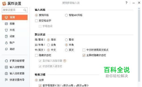 搜狗输入法属性设置——高级——自定义短语