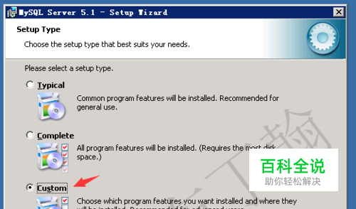 向导启动,按Next继续,有三个选项,我们选择用户自定义“Custom”,有更多的选项,也方便熟悉整个安装过程;