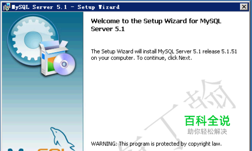 下载的mysql安装文件,运行 mysql-5.1.51,出现如下界面;