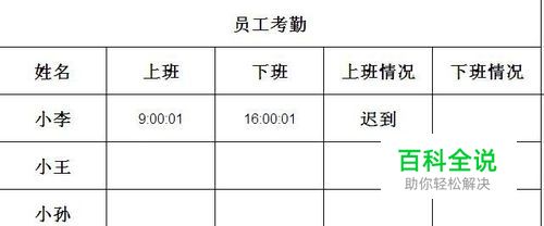 通过表格中的条件公式设定上班记录未打卡或迟到