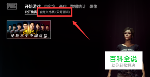打开绝地求生游戏,点击界面上方【自定义比赛(公开测试)】。