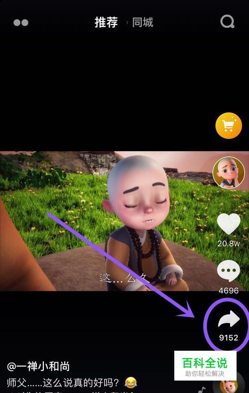 打开APP,找到一个你喜欢的视频,点击屏幕右下方的【分享】,如下图所标识的位置。