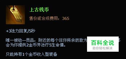 出门装 加里奥的推荐出门装是上古钱币+眼+血瓶。虽然上古钱币系列被削弱了,但是加里奥辅助的话最好还是选择上古钱币出门。