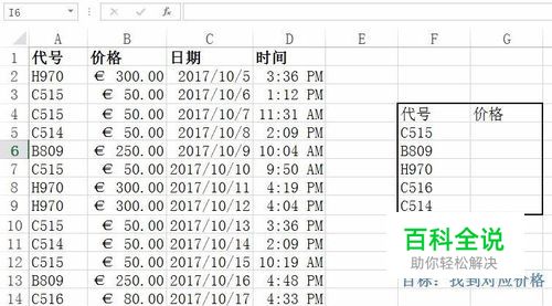 vlookup精确匹配示例 现在我们要从图中大量的数据中找到图框中指定的几件商品价格。顺带一提,该有1000行数据,手动查找是绝对没有前途的~