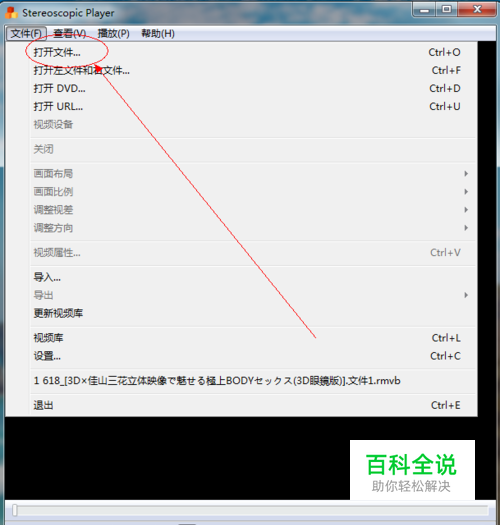 把软件都安装完毕后第一步就是载入电影,打开Stereoscopic Player -----文件-----打开文件。