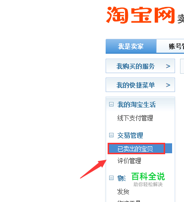 在“卖家中心”的左侧找到“交易管理”——“已卖出的宝贝”