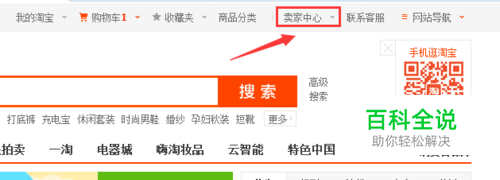 首先我们进入到淘宝网的首页,在首页的上方有一个“卖家中心”,我们点击“卖家中心”