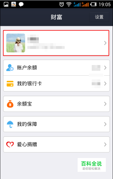 在财富页面点击 “自己的账户” :