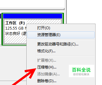 选择要调整大小的磁盘分区,右键选择“压缩卷”。