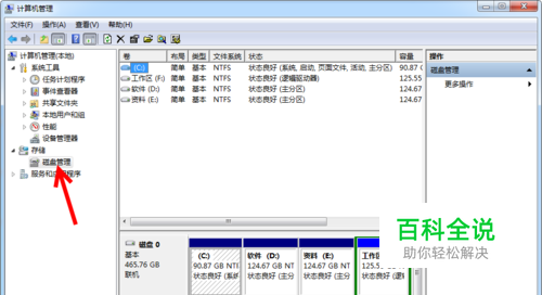打开磁盘管理。在弹出的窗口中选择“磁盘管理”。