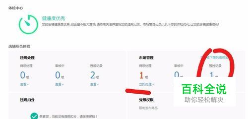 打开体检中心之后,可以看到店铺的健康状态。在右侧市场管理中找到(管控处理)点击下方查看。