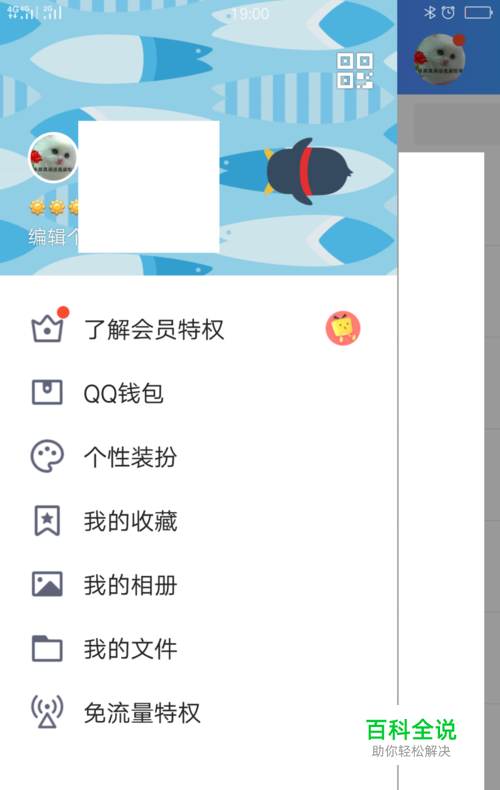 点击头像(上图指出),进入到侧滑栏界面,如图