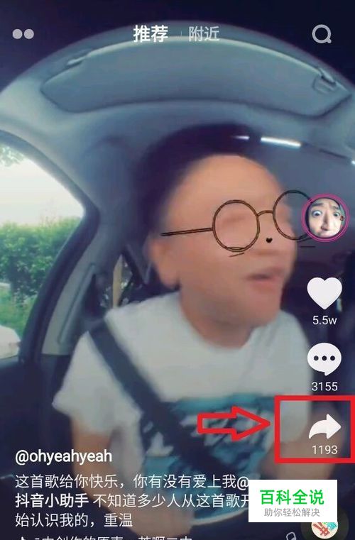 打开抖音后,找到自己想要合拍的视频,点击页面右下角的【分享】按钮,如图2