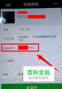 好友在你的微信名上看到如下图所示的信息,多出一个LinkedIn,点击进入就可以看到关联LinkedIn账号信息。